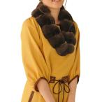チンチラ、裏地−ポリエステル100% 長さ68cm、幅7cm、重さ約80g 首筋に沿う半円型、留め具:カギホック×1、クリップ×1 ・着用モデル身長168cm 『毛皮の女王』と称される、絹のように滑らかでキメ細かな毛並みが特徴のチンチラ。 緩やかなカーブを描いた形をしていて首のラインにぴったり合うデザイン。 留め具としてカギホックとクリップがついているので着け方にも工夫ができる! |