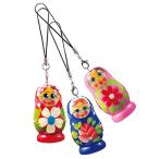 ロシア土産 ロシアお土産 みやげ おみやげ マトリョーシカ 携帯ストラップ 3コセット おなじみの民芸品の、ぬくもりをお届け。 鮮やかな配色が新しい、携帯ストラップ。 全長約11.5cm(モチーフ部分約4.5cm) 木製 ビニール袋入り(個別ビニール袋入り) ロシア製 ※手づくりの為、色、柄が変更になる場合があります。