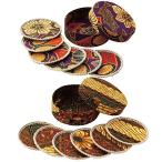 インドネシア土産 インドネシアお土産 みやげ おみやげ バティック コースター 2種セット 独特の色合いと繊細な柄が、テーブルにアクセントを添え華やかに彩ります。 コースター6枚×2セット(ケース付) 直径約8cm 綿 ビニール袋入り(個別包装なし) インドネシア製 ※ 輸入時期により色、柄が変更になる場合があります。
