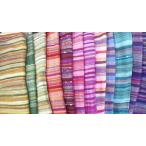 生産国インド 素材コットン サイズ65×170センチ前後(目安です) 全品、サイズの幅がバラバラです シフォン風グラデーション染めのストールです。 淡い染からビビッドカラーのストライプ模様まで。 夏のシンプルなデザインのワンピースを着たとき、大活躍しそうです。 アイデアしだいでは、洋裁生地などに、おすすめ。 |