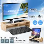 机上ラック。 卓上デスク。 デスク上のスペースを有効活用できる液晶ディスプレイ用モニター台。 台の下に未使用のキーボードやノートPCが収納できる。 シンプルな木製。