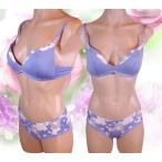 スボーティなシルエットに可愛い花柄のブルーが華やかなノンワイヤーブラ&ショーツL♪ カラー:ブルー サイズ:LBST(93-101)HIP(92-100) ※カップ/アンダー/ショーツサイズです。
