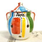 ■ガーリックポット(にんにく壷) こちらは、スペイン・アンダルシア地方のハエンで作られた陶器製ガーリックポット。 にんにくやしょうがなどを入れるのに適した、野菜の保存容器です。 前面に書かれた文字“ajos”とは、スペイン語で“にんにく”の意味。 側面に穴が開いている為、通気性がよく野菜を保存すると、「芽」が出にくく長持ちします。 また、冷蔵庫保存より「甘み」が増し、おいしくなります。 野菜以外にも、あめ玉入れやポプリ入れ、貯金箱としてもご利用頂けます。 ※保存可能野菜:にんにく・しょうが・じゃがいも・玉ねぎ・さつまいもなど サイズ:高さ約17x幅約12cm 原産国:スペイン
