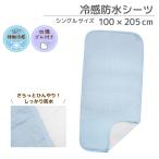 夏用のひんやりシーツで寝苦しさから解放! 防水機能+接触冷感で敷布団を汚しません。 100×205cmのシングルサイズ布団にぴったり合うクールな防水シーツは、表面はお肌に触れるとひんやり感じる接触冷感素材を使用しています。 裏面は防水加工で水分を敷布団に通さず、敷布団が汚れるのを防いでくれます。 お子様との添い寝や、介護にもお使いいただけます。 ずれ防止の四隅ゴム付きで、敷布団にぴったりとフィットします。 ■サイズ:100×205cm(四隅ゴム付き) ■品質:表側/ナイロン73%・ポリエステル27% (裏側にポリウレタンラミネート加工) ■生産:中国 ■ご使用いただける製品サイズ 100×205cmのシングルサイズ敷布団用です。 ■使用上のご注意 ・お洗濯の際は、洗濯ネットをご使用ください。 ・乾燥機はご使用できません。