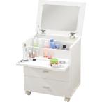 チェストドレッサー コスメやヘアケア用品をスッキリしまえるドレッサーです。 天板を開くと鏡が見えるのでメイク時に便利です。 収納力抜群の引出しが3つついています。 引出しの奥には深めの収納スペースがあり化粧水のボトルもすっきりしまえます。 キャスター付きで移動もラクラクです。