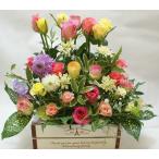 母の日バラ入りアレンジメント プリザーブドフラワー 母の日花カラフルミックス レインボーローズ&カーネーション プリザーブドフラワー カラフルレインボーフラワー キュートにお作り致します。 可愛いさ満点....... |