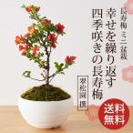 名前は梅だけど、ボケの仲間。 梅のようなかわいい花が四季咲きする人気者です。 古くなって木肌が白っぽく荒れてくると、その枝の中で咲き誇る花の美しさは格別です(^^)。 白い丸の小鉢が紅い花を引き立たせてくれます♪ 女性にも喜ばれる長寿梅をギフトにもオススメです。 数物の商品です。 商品写真は6月に撮影。 樹高…幅11cm × 高8cm 鉢サイズ…幅10cm × 高6.5cm 開花期2〜4月が花の最盛期。 その他、6月や9〜10月にも度々開花。 *数量物の為、若干の高さ、枝葉ぶり、苔の形状が異なる場合がございます。 育て方 日当たり風通しの良い屋外を好みます。 盆栽の水やりは「乾いたらやる」が原則です。 表面の土の色が薄くなったり、鉢を持って軽いと乾いています。 鉢底から水が抜けるまでたっぷりと上げましょう。 水やりの目安として春〜秋は朝夕1〜2回、 夏は朝昼晩2〜3回、冬は2〜3日に1回程度が良いでしょう。 肥料は、春と秋に与えます。 花が咲いている時は花に雨や水をかけないようにして、肥料も外しましょう。 長寿梅は実が大きく枝の負担になりますので、花後は花ガラをとりましょう。