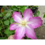 「クレマチスきざし」は、花径12〜15cm。 ピンク地に赤紫色の筋が刷毛目状に入る一重咲き、大輪です。 つるの伸びがよく、返り咲き性もある優良品種です。 |