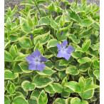 つる性の多年草で主に斑の入った葉っぱを鑑賞しますが、春に咲く淡い青色の花も爽やかです。 耐寒性・耐暑性があり乾燥にも強く、日陰でも育ちますのでグラウンドカバーとしても利用できます。 長いつるを生かして花壇の縁どりにも使えます。 春と秋に出回ります。
