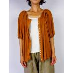 たっぷりとレーヨン混素材を使用し、 衿ぐり一周全体でギャザー取りをしたドレープ豊かなカットソーです。 大きく深い衿ぐりで、前中心は合計17個の多ボタン開きになっています。 袖は独特のカッティングでのドルマンスリーブになっています。 ちょうど五分から七分袖の長さになります。