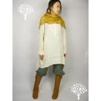 柔らかい無地Wガーゼを使用し洗い加工でナチュラルなシワ感を出ています。 胸部分に切りっ放しのフリルのたたき付けを施してあります。 少しフレアに流したサイドライン、それを前身頃の中心で大きくカーブして特徴的な形でさらに強調してあります。 両脇に供布ヒモがついてアクセントに。 |