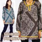 織り柄のあるドビーコットンにペイズリープリントを施した落ち着いたカラーの プルオーバーシャツです。