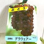 ぶどう 苗木 デラウェア 12cmポット苗 ブドウ苗 葡萄 デラウェアは、ぶどうの中ではおなじみの品種です。 糖度が20度以上と高く、小粒で種がないのが特徴です。 果皮と中身は分けやすく、強くつまみむと、実が出てくるので、どなたでも食べやすいです。 1本で結実します。 ぶどうは過湿を嫌いますので、水はけの良い場所に植えてください。 もちろん鉢植えでも育ちます。 水やりは乾いたらあげる程度です。 地植えの場合は、真夏に何日か雨が降らない場合以外は、ほとんど必要ありません。 開花時期:5〜6月 収穫時期:8月 最終樹高:2〜3m 栽培適地:北海道〜沖縄 ※写真は参考写真(見本)になります。 ※植物ですので多少の個体差があります。 時期によって画像にある花や実、葉は付いてない場合があります。