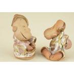 備前土焼 光工房 伊藤光伸 作品集 四国は伊予の地で、備前土による手造り鉢を手掛けること一筋。 最大限備前土を生かした作風は全国にファンが多く、その作品は持ち込むほどに味わいを深め、松柏に合わせると最高の一品と言えます。 ・手間隙掛けた手造り鉢で、品薄により発送までに日数を頂く場合がございます。 ご承知置きをお願い致します。 ・陶器ゆえのサイズ、色合いの違いが多少ございます。 ご承知置きください。 ご自分用にはもちろん、誕生日、父の日、母の日、敬老の日、 等々大切な方へのプレゼントやギフトにもおすすめです。 光工房 備前土焼、光伸作/猿(語らい)一対[(大)高11cm(小)高9cm] (大)高11cm(小)高9cm ※卓、茶筅は商品には含まれません。