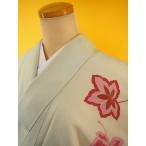 お問い合せやご注文は、いつでもどうぞ デンワ FAX 0770−22−6204 ケイタイ 090−2124−8156 URL http://www.recyclekimono.com/ 上山 悦子 yama2006rm.rcn@tw.drive-net.jp 上前に茶色のシミがあります(写真参照) 入念な手縫い仕立てです 広衿です 一つ紋です パステル調の美しいペパーミントグリーン色地にスワトー刺〓模様です 丹後ちりめん優しい生地です 品質表示のはぎれ付きです(写真参照) 胴裏は白絹、裾裏は同布の絹です 絹100%です &nbsp; 身丈・161cm 裄・66.5cm 袖丈・49cm 前幅・24cm 後幅・30cm &nbsp; A・・・新品、新品同様 B・・・数回着用ありの美品 C・・・使用感あり 着用されるのであればリサイクルに理解のある方 D・・・リメイク用 |