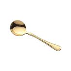 実用的で且つ装飾品のようなゴールド仕上のカトラリーは食卓を華やかに演出致します。 スープ用の皿が丸く大きいサイズの丸いスプーンです。