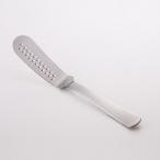 冷蔵庫から取り出したばかりのバターがトーストの上で溶けない! そんな不満を解消するおろしつきのバターナイフです。 バターを細かく筋状に削ぐことができ、 そのままトーストの上に薄く塗り広げられます。 バターケースに入れたバターでも削ぎやすいように普通のバターナイフよりも傾斜のついたハンドル設計になっています。 細かい筋状にすることで摂取量が減り、カロリーを抑えられます。 ふんわりとしたバターの新食感のおいしさ! バター以外にもチーズやチョコレートを 削いで料理や製菓にご利用いただけます。 食器洗い乾燥機のご使用が出来ます。 洋食器メーカーの職人が作った日本製です。 ■ カチカチのバターをふわふわに削いで溶けやすくします。 ■ サイズ: 全長 165mm |