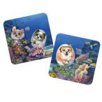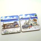 ■裏面はコルク製ですのでテーブルに傷が付きません。 ■使うのがもったいない場合は、華やかな飾りにいかがですか。 「ビーチで」は、ワンちゃんとネコちゃんの各二枚の構成です。 夏の海岸のノンビリとした雰囲気はとても和みます。