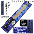 ついで買いSALE!! 同梱購入でお安くお買い求めいただけます♪ 研げる包丁 裏面(平らな側)のみを平研ぎしてください。 サイズ(約): 全長:31cm 刃渡り:19cm 材質: 刃部:モリブデンステンレス刃物鋼 柄:フェノール樹脂(ベークライト) (フルタング3点カシメ構造) 原産国: 中国製 本格料理包丁が切れ味抜群なのに激安価格! ・金属部分が柄元まで貫通しているフルタング3点カシメ構造。 (本通し) ・重量感があり、バランスの良い一品です。 ・衛生的で臭いが付かないベークライト樹脂ハンドル。 樹脂ハンドルで、 汚れにくく、水にも強く、衛生的です。 裏面(平らな側)のみを平研ぎしてください。