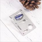 様々な用途に使用可能。 11機能の万能ツールカード。 サイズ:約6.9 x 4.5x 0.2cm 重量:約28g 材質:420高品質ステンレス鋼 硬度:55HRC 機能:1缶切り2屈曲3ノコギリ 4キーチェーンホール5ミニスパナ6コンパス7スパナ8スケール9栓抜き10一文字11側刃。 クレジットカードよりも小さく、お財布のカードホルダーなどに入れておくことも可能です。