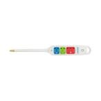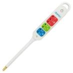 ■味噌汁やスープの中に入れるだけではかれるから簡単! 電源ボタンを長押ししながら、味噌汁やスープの中に本体の先端を入れるだけで塩分濃度をはかれます。 ■3色のLEDで7点表示するから濃い・薄いがすぐわかる! 0.3〜1.5%の塩分濃度を濃・中・薄の3段階で表示します。 さらに3色のLEDで7点表示するので濃い・薄いがすぐわかります。 ■測定方法:電導度測定方式 ■表示方法 ・3色LED(7点)3段階表示 ・3段階判定 ■測定範囲:0.3%〜1.5% ■測定精度:±0.2% ■動作温湿度範囲 ・0℃〜50℃ ・85%RH以下(ただし結露しないこと) ■電源:ボタン電池LR44×3個 ■電池寿命:約6か月(1日5回使用) ■被測定物温度:0℃〜90℃ ■外形寸法:縦188×横22×厚さ14mm ■質量:約25g ■測定センサー耐熱性:100℃ |