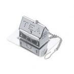 家がモチーフとなっている、かわいらしいティーストレーナーです。 屋根を開けて一人分の茶葉を入れてカップに入れます。 カップから取り出した後に便利なトレイ付き。