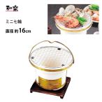 ■お品物のご紹介 料亭の雰囲気を満喫できる一人用のミニ七輪です。 旬の野菜や海の幸の炭火焼を、食卓でお楽しみ頂けるミニ七輪です。 お店の雰囲気で、懐かしい風情をお楽しみ頂けます。 ■製品サイズ(約) 幅200x奥行200x高さ145mm(セット時) ■材質 コンロ:珪藻土 金網:鉄(クロムめっき) 置き台:天然木