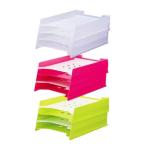 ■乳白、赤、黄緑 ■パッケージ内容:本体2個、仕切板2個 ■A4ヨコ ■巾356×奥275×高122mm(内寸:巾345×奥248×高54mm) ■耐荷重:1段2Kg迄 ■ハイインパクトポリスチレン製 ※外寸は2段重ね時、内寸は1段当たりの寸法です。 仕切りは1組に2枚付いています。 3枚以上ご使用の場合はレタートレー用仕切りをご利用ください。