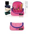 サイズ:W180xH90xD75mm 仕様:内ポケット6つ 材質:ポリエステルナイロン 愛らしいフォルム 前から見ても、横から見てもコロンとした形状のまあるいフォルム。 ファスナーの2トーンがアクセントになってなおGOOD! バッグからチラッと見えてもとってもかわいいし、これひとつ持って廊下や職場を歩いていても、クラッチバッグ風デザインだから、おしゃれにキマる☆ みんなの注目の的になることまちがいなし・・・!〜 大人のお道具箱に! よく使うものだけをペンポケットに立てておくと、ペンケースの中から探す手間も省けるから勉強や仕事の効率アップ〜! また中が広いので、荷物持ちさんにとっても重宝しそう。 はさみやのり、クリップにコンパス、何でも入るからペンケースを兼ねたお道具箱としても....... |