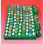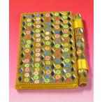 ゴテゴテ装飾のド派手なイスラム風手帳です。 インドっぽくもありアラブっぽくもある逸品。 中は白紙の紙です。 カレンダーや電話帳等の印刷はありません。 メモ帳としてお使いください。 ボールペンも付いています。 但し、芯は付いていませんので、別途文房具店などでお買い求めください。 細かいツブツブの装飾が施されていますが、接着がかなり甘く、使用しているうちにボロボロ落ちます。 また、装飾に、インド製ハンドメイド品によくありがちな歪みやズレ等があります。 何卒ご了承ください。 * 縦 / 約12.5cm * 横 / 約7.5cm * 厚さ / 約1.2cm * クリックポスト不可 * 備考 / 手作り品につき、商品によりデザイン、装飾(特に花柄の色の配列)が微妙に異なります。 ご了承ください。 * その他 / 光の加減、撮影及び画像処理の技術的問題、モニターの違い等により、写真と現物の色が多少異なる場合がございます。 何卒ご了承ください |