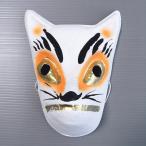 狐の夜祭、きつね行列、きつね(盆)踊りなど各地の狐祭りやお芝居、学芸会などでご利用いただいているきつね面です。 目の部分は孔になっており、ゴム紐付きですので実際に顔にかぶることができます。 狐は古くから神の使い、知恵の象徴などとされてきたことから、きつね面は縁起物の飾り面としても人気があります。 ※手作り商品ですので、柄行やサイズ等若干のばらつきがあります。 キツネは元来稲荷神(いなりのかみ、いなりしん)という神の使いとして信仰され、妖力をもつものとして農耕神として信仰され、豊穣や富のシンボルとされていました。 稲荷神社の前には、宝玉をくわえた狐の像が置かれる例が多く、稲荷神には神酒・赤飯の他に狐の好物とされる油揚げが供えられるようになりました。 ちなみに、油揚げを使った料理を稲荷と称するようになったのはこのためです。 ■素材 紙パルプ(紙粘土) ※ゴム紐付 ■サイズ 巾15cmXタテ(耳の先からアゴまで)22cm ■重さ 70グラム ■色柄 顔:白 眉毛/ヒゲ:黒 目:ゴールド・ぼかしオレンジ 口:ゴールド |