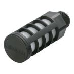 ■特徴 ・減音量は30dB(A)以上です。 ・抵抗が小さいため、排気速度の低下は微小です。 ・本体に難燃性樹脂を使用しています。 ■仕様 ・減音量(dB):30 ・有効断面積(mm[[の2乗]]):75 ・接続口径:R1/2 ・全長(mm):71.4 ・質量(g):21.0 ・使用流体:空気 ・使用圧力:1MPa ・流体温度:5〜60℃ ・締付トルク3N・m以下 |