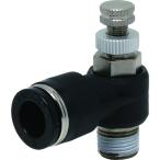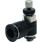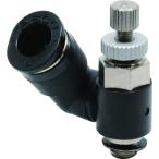 ■特徴 ・流量特性が優れています。 特に低流量域での微調整が容易にできます。 ・チューブ取り出し口が自由に回転するため360°のチューブ取り出し方向が得られます。 ■仕様 ・適合チューブ外径D(mm):6 ・接続口径:M5×0.8 ・質量(g):20.0 ・使用流体:空気 ・使用温度範囲:-5〜60℃(凍結なきこと) ・使用圧力:0.05〜0.7MPa ・メーターアウトタイプ |