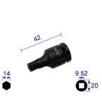 314C 4560291320639 ナック ■インパクトレンチでの締め付けに対し、耐久性の高い特殊鋼を使用しています。 ■スタンダードからロングサイズまでの段階的な品揃えで奥まった所、狭い箇所での締め付けにも対応します。 ■六角穴付、止めネジ用ボルト専用ショートタイプ ■耐久性の高い特殊鋼を使用し、価格もリーズナブルです。 ■差込角(mm):9.52 ■対辺寸法(mm):14 ■全長(mm):42 ■質量(g):65 ■六角穴付き・六角穴付き止めネジ用 ■ピン・リング ■ピン、リングはツールへ確実に固定してください。 ■ピン、リングに変形、磨耗、劣化などの異常が認められたら交換してください。 日本 |