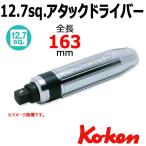 KOKEN コーケン品番4112N ■差込角:1/2"(12.7mm)sq ■寸法・全長:163mm、 ■重量:730g ■ハンマーで叩かれる打撃部はメッキがはがれてケガをしないよう、いったん 全身にニッケルクロムメッキをした後に打撃部のみを削り、再度黒染め処理を施しています。 ※過大なハンマーは使用しないでください。 ※ネジに対して垂直にセットしてください。 ※ビットはネジと合ったサイズをご使用ください。