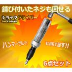 錆び付いたネジも回せる「ショックドライバー6点セット」が登場!!! チカラを込めても回らなくなってしまった、錆びたネジやナメてしまったネジ…。 このショックドライバーなら簡単に回せちゃいます!! 使い方は簡単!! 回らないネジにセットして、後部をハンマーでぶっ叩くだけ!! ぶっ叩いたパワーでネジにしっかり食いつきながら、 同時に叩いたパワーを回転力に変換!! スッキリするほどグルングルン回して、簡単に取り外すことができます!! 正転・逆転どちらにも回せます!! セット内容 ショックドライバー×1 プラスビット×3 マイナスビット×3 ケースサイズ:約W220mm×D72mm×H54mm ※仕様やデザインは改善のため、予告なく変更される場合がございます。 送料 無料 ※北海道は540円、離島地域及び沖縄県は1,620円にて承ります。 ※同梱可能商品です。