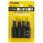 墨つけ・基準出し 墨汁(タジマ)パーフェクト使いきり墨汁4個 psb-4(用途)/墨つぼ用墨汁。 (機能・特徴)/乾燥してもつぼ糸、つぼ綿が硬く固まらず、水ですぐ溶け元に戻ります。 凍結しにくく寒冷地での作業が楽に行えます。 塩分を含んでいません。 竹、金属、樹脂、あらゆる墨差しにも対応します。 (仕様)/内容量:7ml×4本セット。 (材質)/内容物:水溶液。 包装:PET。 (商品サイズ)/幅16×高さ57×奥行16mm 重量7g (注意事項ほか)/他の墨汁と混ぜないでください。 よく振ってからご使用ください。 (注意)/離島、一部地域、大型商品は別料金。