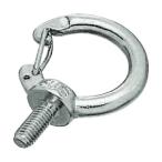 アイボルトは頭部に丸い穴があり、ひもをかけたりフックを取り付けるなどして、重い品物や機械類の吊り上げなどに利用されます。 破断したりリングに変形が生じないよう、保証荷重が定められています。
