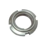 形状 ■ナットにバネ効果のあるリング(フリクションリング)をカシめ一体化した物です。 /特徴 ■ベアリング用のゆるみ止めナットです。 ■フリクションリングのバネ作用により雄ねじ部に摩擦が生じ、ゆるみ止め効果が発生します。 ■中間位置で定着する事が出来ます。 ■オールメタルなので耐熱性に優れています。 ■シャフト側のキー溝加工が不要です。