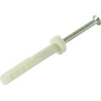 ■入数:1PK ■外径(mm):4 ■長さ(mm):28 ■最大取付厚(mm):5 ■穿孔深さ(mm):38 ■引張最大荷重(kN):2.26 ■下穴径(mm):4 ■仕上げ:ラスパート ■質量(g):225 ■頭部形状:サラ ■頭形状:サラ ■本体:プラスチック樹脂 ■ビス:スチール ■ねじとプラグが相手材に密着することで強力な締結感が得られます。 ■中空部・非中空部のどちらの材料にも使用できます。 ■モルタルやブロックにも使用できます。 ■ねじとプラグの合体効果で強い締結感があります。 ■コンクリート、アスロック等の中空建材。 ■モルタル、ブロック、中空押し出しセメント板、窯業系サイディング下地用。 ■引張最大荷重は、コンクリート強度Fc26N/m[[平米]]時の値です。