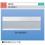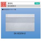 新協和室名札SK-602W-2シルバーH125xW210アルミ製名札左右スライト脱着式。 カラー:シルバー サイズ:H125xW210(mm) 材質本体:アルミ押出型材アルマイト処理 名札:透明フィルム・樹脂板(グレー) 注意:取付ねじ・プラグは付属していません。 名札左右スライト脱着式。 カラーはシルバー、寸法はH125mmxW210mm材質はアルミ押出型材アルマイト処理。