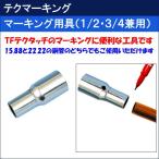 火の使わない銅管継手『TFテクタッチ』を取り付ける際、マーキングをするのに便利な工具です。 銅管を当たるまで差し込み(穴部で確認)端部にマジックをあて、回転してマーキングします。