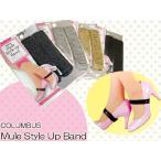 『COLUMBUS(コロンブス) ミュールスタイルアップバンドギャザータイプ(ミュール・サンダルのカカト浮き防止) 17721 ラメブラック』 あのぱかぱか音を何とかしたいあなたに!カカトと靴を密着させて歩行時にカカトが浮き上がるのを防止する、ギャザータイプのミュールバンドです。 カカトと靴を密着させることにより、歩行時の足の疲れを和らげます。 またカカトが靴に密着するので歩行時、ヒールから出る音を軽減します。