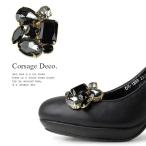 ビジューを贅沢に装飾したシューズクリップ。 キラキラと輝かしい存在感で、お手持ちのシンプルパンプスを華やかにスタイリングアップ! 結婚式、お呼ばれ等のパーティースタイルには欠かせない存在となってくれます☆ その他の場面では、パンプス・シューズ・トングサンダル・ブーツなど、アレンジ次第で様々なシューズにお使いいただけます♪ カラー:ブラック 直径:約40mm×約32mm ※クリップ式着脱 ※ハンドメイド製品のため1点1点が微妙に異なります。 ※2コ入り1組のお値段です。