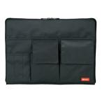 ■外寸:縦255×横350×厚17mm ■仕様:メインポケット,マチ無しポケット2個,マチ付ポケット2個,ペンポケット3個 ■材質:本体=ポリエステル,緩衝材=PU