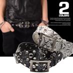 合皮を仕様したベルトのボディーに両サイドスタッズをはめ込み、真ん中に刺繍をほどこしたハード系デザインのシングルピンベルトです。 バックルもアンティークなでこぼこした形の大きなものを使用しているので、さらにインパクトがあります。 ウェスト:約89〜101幅:約3.8 合成皮革 金属部分を取外しきることで記載以下に調節可能バックル交換可能 |