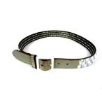 クロコの型押しにスタッズとアイレットをはめ込んだデザインベルトです。 サイドと中央は違うカラーで切り替えてます。 ツヤのあるエナメル地がスタッズとマッチしてきれいな仕上がりになっています。 ウェスト:最大約105くらいまで(アイレットとベルト下の金具部分をはずしてベルトを切ることで記載のサイズ調節が可能です。 )幅:約3.8バックル交換不可 合成皮革 アイレットでの調節で長すぎる場合は、ベルト下の金具部分をはずしてベルトを切ることでサイズ調節が可能です。 バックル交換不可 |