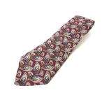 ■カラー:シルバー、ブルー、赤の柄 ■サイズ:長さ1m43cm、剣先幅9cm ■素材:シルク100% ■原産国:ITALY ■コンディション:良好