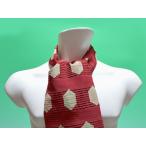 正絹の雨コート地の反物から作ったスカーフ・マフラーです。 男性用のアスコットタイとしてもお使いいただけますが、スカーフのため両端は剣先ではなく長方形になります。 新品の手作り品です。 正絹なのでとても軽くて暖かいです。 落ち着いた赤に大きな水玉模様です。 水玉の中は小さな格子模様です。 サイズは幅が約17.5センチ、長さは130〜135センチです。 手作り品のためサイズ及び模様の出方にはバラつきがありますので、ご容赦ください。 少し訳ありで全体に小さな汚れ、織傷もしくは色とびがある場合がありますがほとんどわかりません。