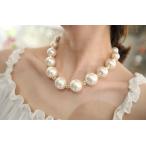 大小パールのグラデーションが華やかなネックレス 成人式・結婚式・パーテイ 大粒パールネックレス ラインストーンネックレス |